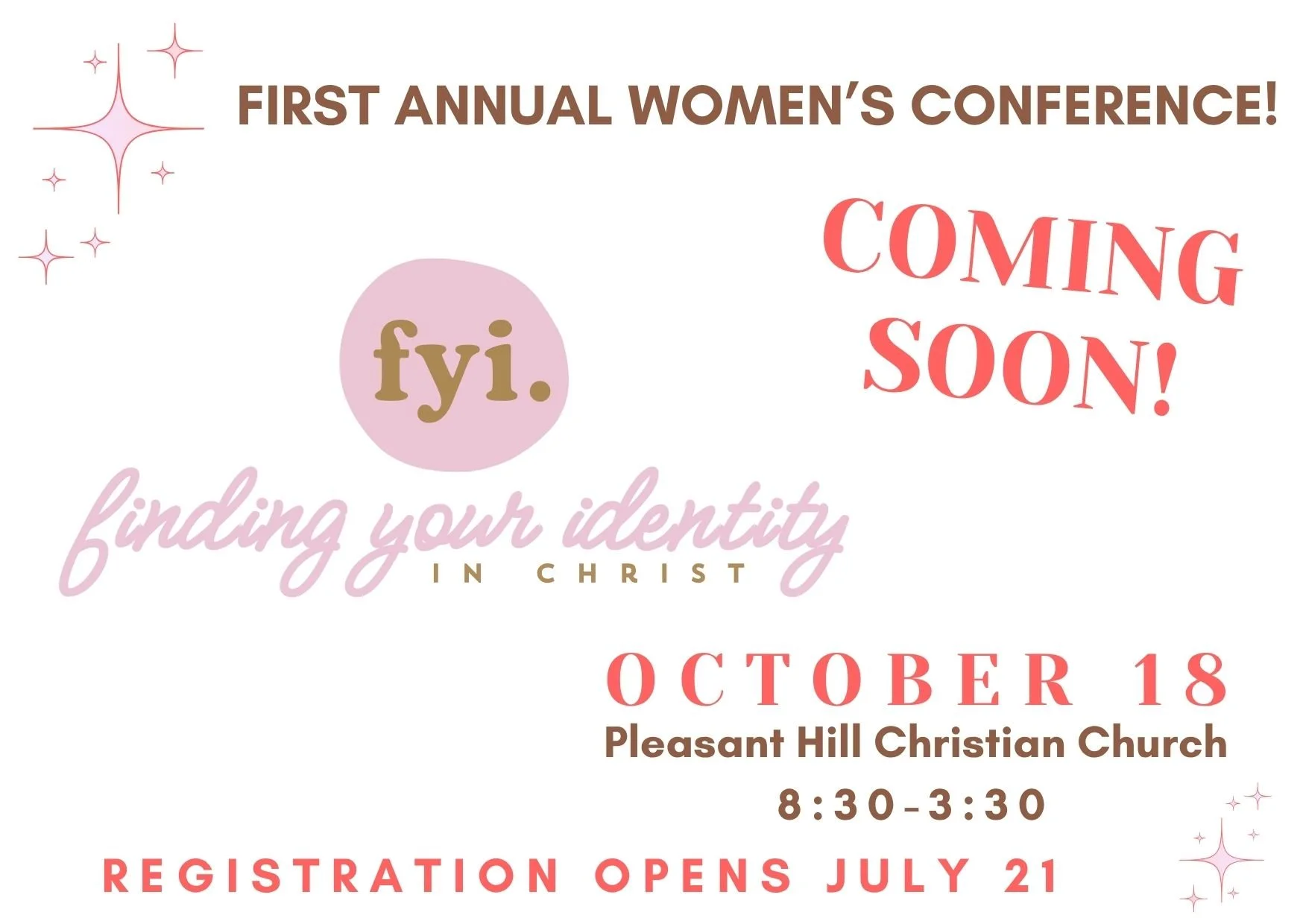 2025 Women's Conference Saturday, October 18, 2025 8:30 AM 3:30 PM 08:30 15:30 Pleasant Hill Christian Church 19433 West Frontage Road Raymond, IL, 62560 United States (map) Google Calendar ICS SAVE THE DATE...MARK YOUR CALENDARS...REGISTRATION STARTS JULY 21st ~ SAVE THE DATE...MARK YOUR CALENDARS...REGISTRATION STARTS JULY 21st ~ SAVE THE DATE...MARK YOUR CALENDARS...REGISTRATION STARTS JULY 21st ~